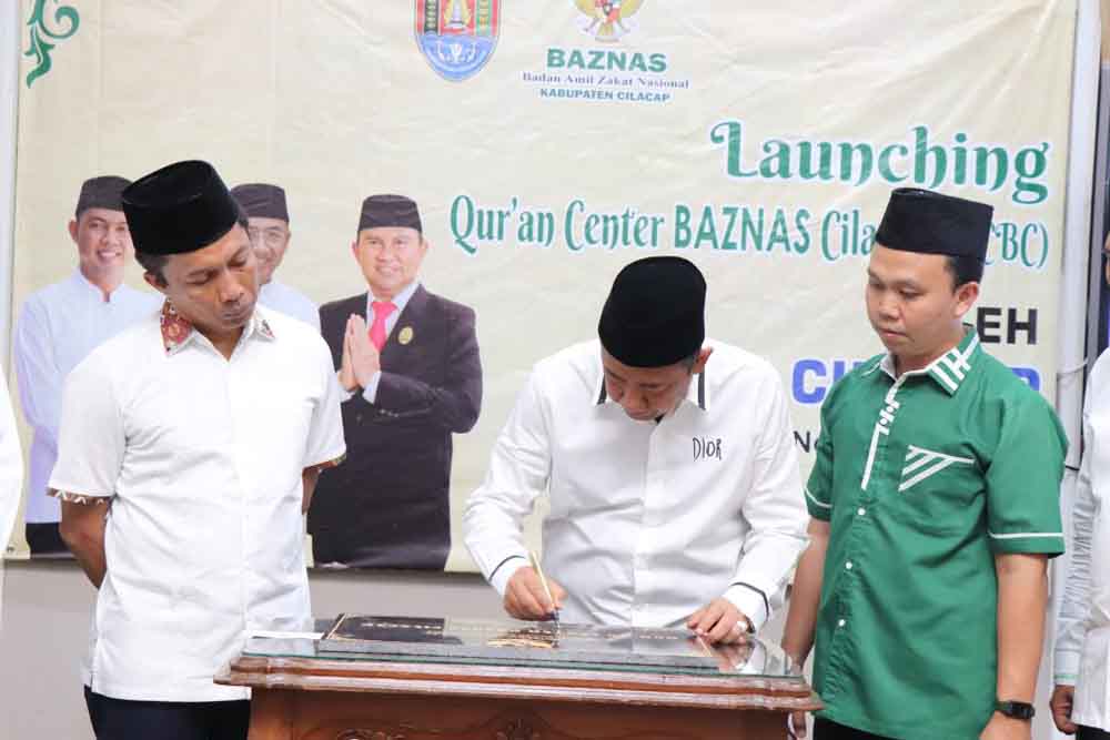 Kemudian dilakukan penandatanganan prasasti oleh Bupati Cilacap yang didampingi oleh Sekretaris Daerah Kabupaten Cilacap Awaluddin Muuri, dan disaksikan Wakil Ketua Baznas Jawa Tengah, Ketua Baznas Cilacap beserta jajarannya dan tamu undangan lainnya, sebagai tanda diresmikannya Qur’an Center Baznas Cilacap. (HS-08)