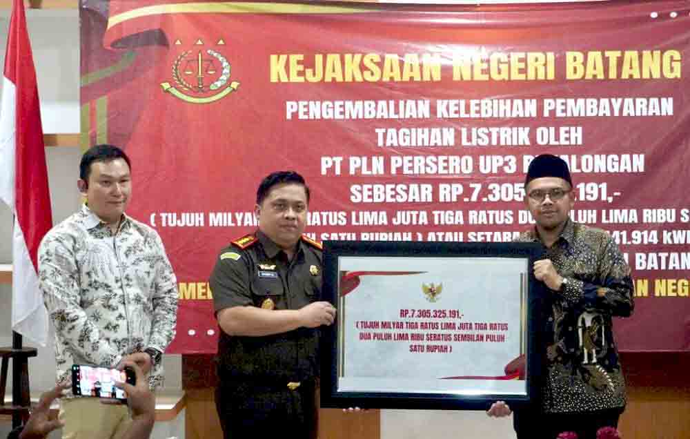 “Kami menyampaikan terima kasih atas upaya Kejaksaan Negeri Batang yang luar biasa dalam pengamanan aset maupun keuangan negara. Melalui proses penyelidikan ini, kelebihan pembayaran bisa dikembalikan ke pemerintah daerah sebesar Rp7,3 miliar,” ungkapnya.