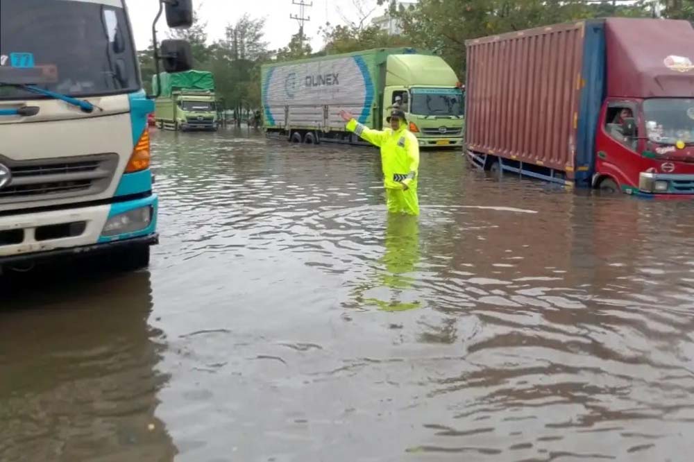 Banjir di Jl Kaligawe Semarang. (Foto : korlantas.polri.go.id)