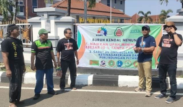 Spanduk Tuntutan Kenaikan Upah dan Penolakan UU Omnibuslaw Diturunkan, Dewan Buruh Bersurat ke Bupati Kendal