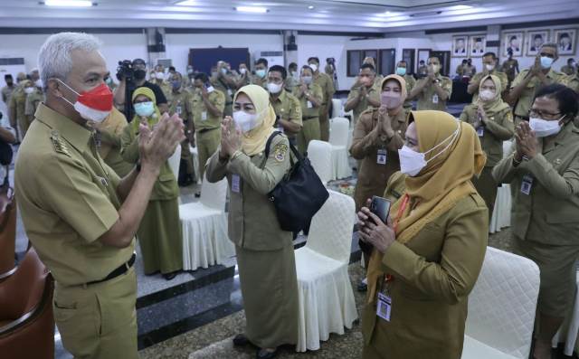 “Seminggu ini berjalan dengan baik,” kata Ganjar usai acara Penyerahan Keputusan Pengangkatan Kepala Sekolah dan Pengarahan Gubernur Jateng kepada Kepala SMA dan SLB di Gedung Gradhika Bhakti Praja, Komplek Kantor Gubernur, Senin (10/1/2022)